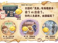 約 4 分鐘能睇完各位日文學習者,想像一下你依家玩緊一場叫「人生」嘅RPG,而「相遇」就係遊戲入面最重要嘅事件(Event)。 喺呢個遊戲世界,觸發事件嘅指令有兩個:一個係日常嘅「会う」另一個係觸發隱藏劇情嘅解鎖器「出会う」。今日,就等我呢位GM(Game Master)帶你潛入呢個系統,解鎖所有相遇嘅可能性! 【第一章:日常任務觸發器 — 会う】 「会う」係你嘅常用技能,負責處理99%嘅日常任務。佢好似一個穩定嘅NPC(非玩家角色)不如就叫佢做「阿會」,阿會佢專門幫你安排同其他角色嘅互動。但用法唔同,劇情就會完全改變。 ...